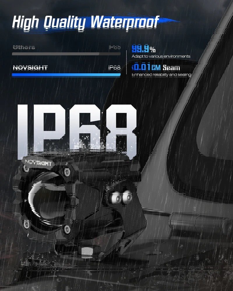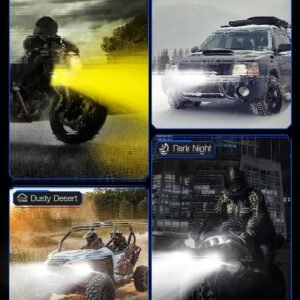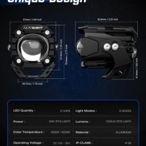 Novsight CYBER 1 Series 2-Inch LED Pods Off-road Motorcycle UTV ATV Driving Lights deliver versatile illumination with dual white and amber color options and multiple flash modes for enhanced visibility and safety in varied conditions. Designed with durable waterproof construction and included mounting brackets and harness for easy installation, this compact LED lighting kit is ideal for motorcycles, ATVs, UTVs, and other off-road vehicles.