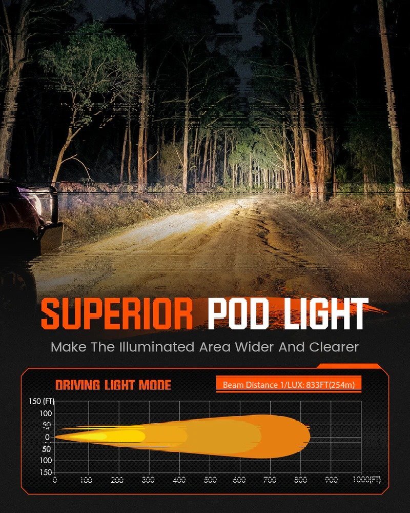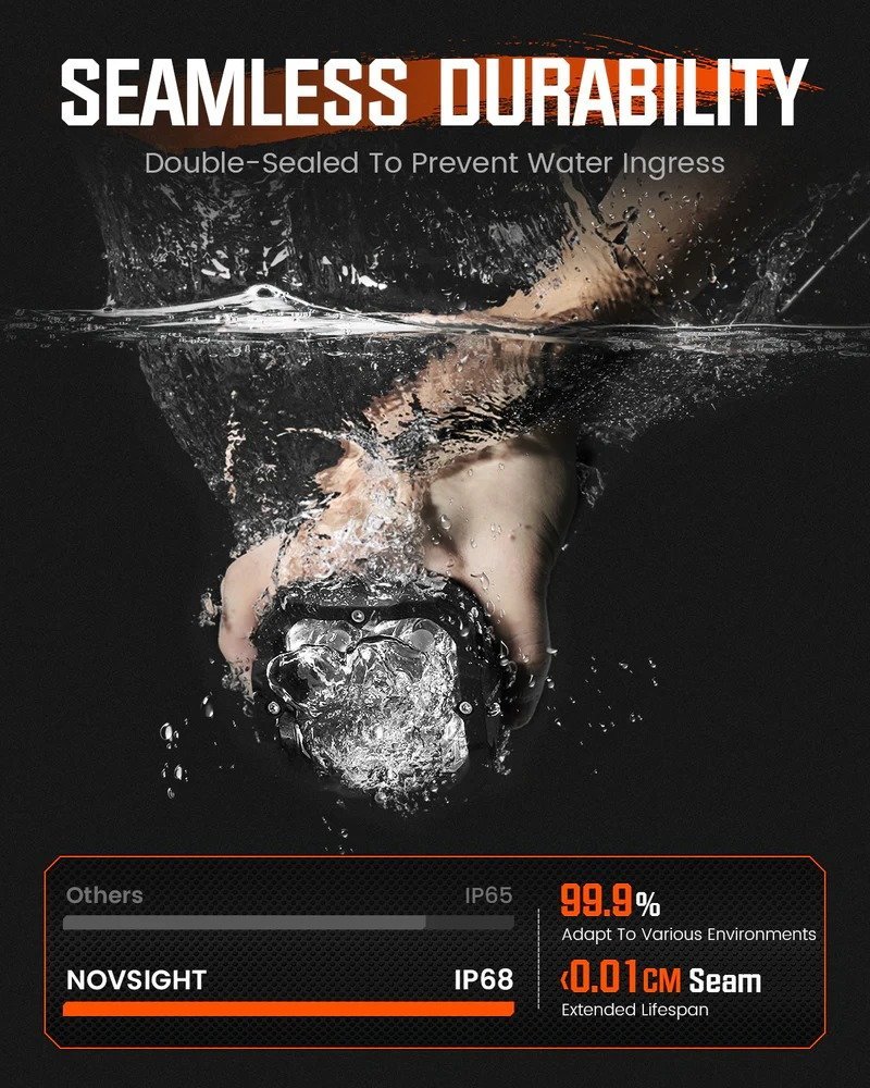 Novsight CYBER 1 Series 3-Inch Cube LED Pods provide powerful and focused illumination for motorcycles, ATVs, and UTVs. Equipped with a complete wiring harness for easy installation, these durable and waterproof driving lights deliver reliable performance and enhanced visibility for both on-road and off-road adventures.