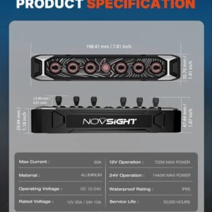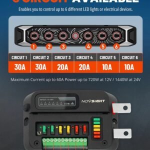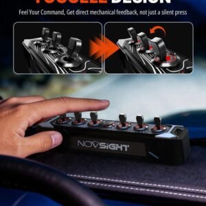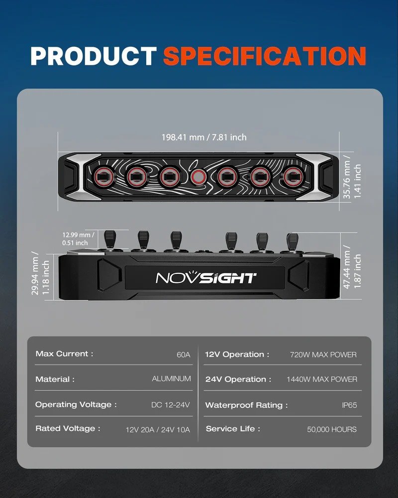 Novsight CYBER Series 6-Gang Toggle Switch Wireless-Control is a compact and rugged off-road switch panel that lets you control up to six lights or accessories without messy wiring. Featuring a durable aluminum housing, six individual toggle controls, and a wireless RF sensing system for up to ~32.8 ft wireless range, this panel keeps your setup clean while providing reliable, instantaneous on/off control for your off-road lighting and accessories.
