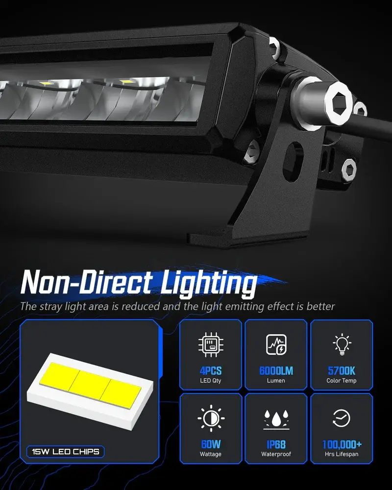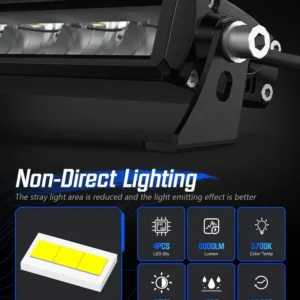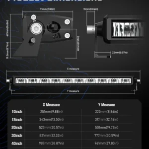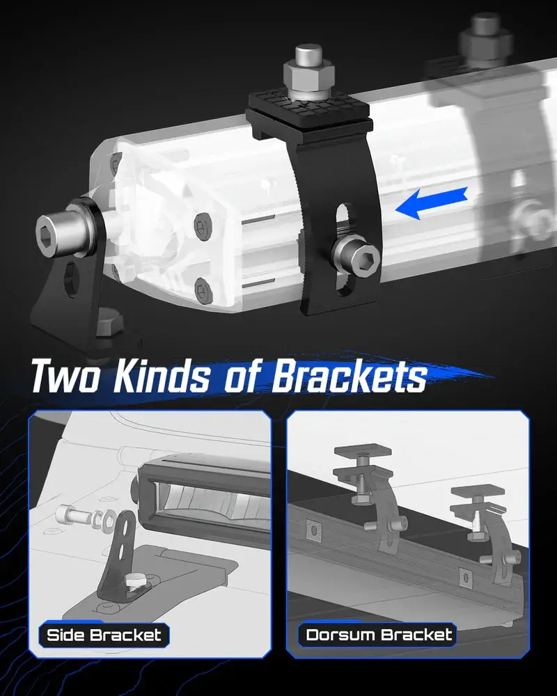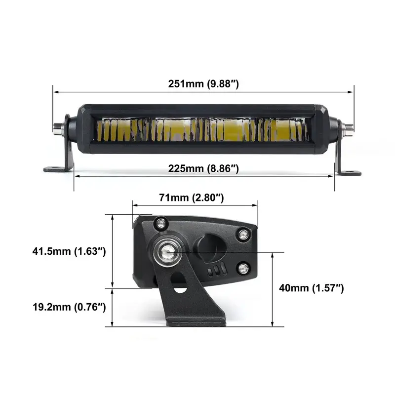 Rock Series 8 Inch Single Row LED Off-Road Light Bar High Power with Bracket delivers focused and powerful auxiliary lighting with an IP68-rated waterproof design and a stable mounting bracket included for secure installation. Featuring advanced optical technology for effective light projection and a rugged build for all-weather performance, this high-power LED light bar is ideal for motorcycles, ATVs, UTVs, trucks, and other off-road vehicles seeking enhanced visibility and reliable performance on every adventure.
