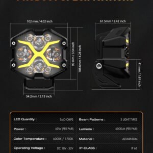Novsight X‑Series 4‑inch LED Off‑road Pod Light Driving Beam with Bluetooth Switch Panel combines rugged off-road lighting with smart wireless control — featuring a set of powerful 4″ driving-beam LED pods and an 8-gang Bluetooth switch panel for easy mode switching and control from your smartphone. Built with a striking X-line design, durable IP68 waterproof housing, and adjustable brackets, these lights deliver dependable illumination for motorcycles, ATVs, UTVs, trucks, and other adventure vehicles while adding style and functionality to your ride.